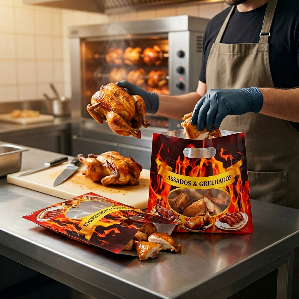 Indicação: ideal para frangueiras, rotisseries, mercados, açougues, lojas de assados e empreendedores que trabalham com delivery de carnes e grelhados.